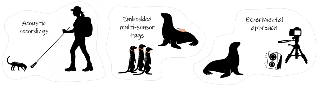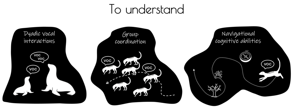 My research focuses on acoustic communication in group-living terrestrial and marine mammals. I aim to decipher the role of vocal signals in the establishment and modulation of social interactions and collective behaviours. More recently, I have expanded my work to investigate how moving animals use acoustic communication, together with the cognitive mechanisms underlying orientation and navigation. My projects rely on a range of field-based data collection methods, including active recordings of animal vocalisations, passive acoustic monitoring, and the deployment of embedded multi-sensor tags. My approach combines analyses of acoustic signals with behavioural and movement data, and incorporates experimental methods such as playback experiments and translocation paradigms.
